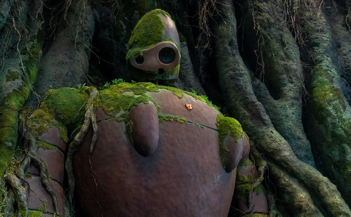 『天空の城ラピュタ』に登場する廃墟となった庭園で、ロボット兵たちが主(あるじ)の帰りをじっと待っています。つたと苔におおわれた壁には、古き紋章が。